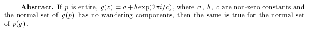 Baker, I.N., and Anand P. Singh: Wandering domains in the iteration of compositions of entire functions, pp. 149-153.