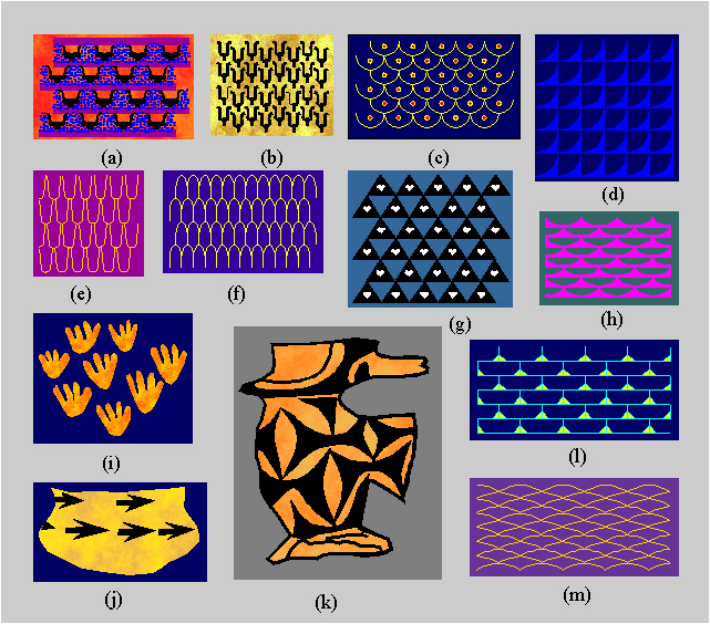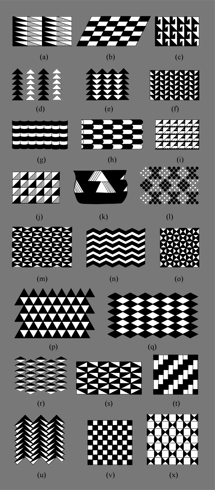 From the common point of view of geometry and ornamental art, the most interesting are the crystallographic discrete symmetry groups of ornaments. The idea to analyze the ornaments of different cultures by applying the theory of symmetry and by registering the symmetry groups of ornaments, developed by G. Pòlya (1924), has been abundantly used by A. Speiser (1927), E. Müller (1944), A.O. Shepard (1948), H. Weyl (1952), J. Garrido (1952), N.V. Belov (1956a), L. Fejes Tòth (1964), D.W. Crowe (1971, 1975), A.V. Shubnikov and V.A. Koptsik (1974), D.K. Washburn (1977), E. Makovicky and M. Makovicky (1977), B. Grünbaum (1984b), I. Hargittai and G. Lengyel (1985), D.W. Crowe and D.K. Washburn (1988) and by many other authors. The quoted works mainly analyze the appearance of 17 discrete symmetry groups of ornaments in the art of the ancient cultures (Egypt, China, etc.), in Moorish ornamental art or in ethnical art. How difficult it is to exhaust all the symmetry possibilities for plane ornaments and to discover all the symmetry groups of ornaments, is illustrated by the fact that many nations, even those with a rich ornamental tradition, in their early art do not have such examples (B. Grünbaum, 1984b; B. Grünbaum, Z. Grünbaum, G.C. Shephard, 1986).