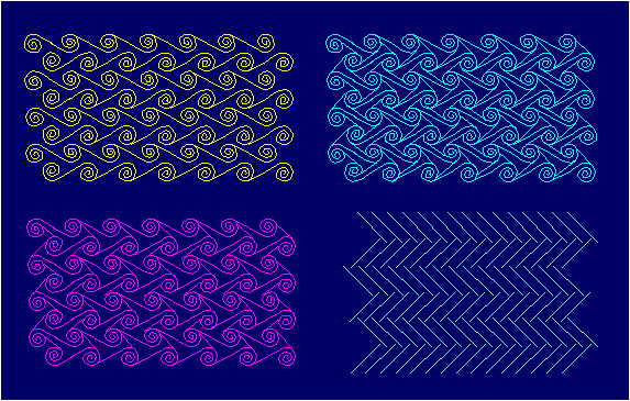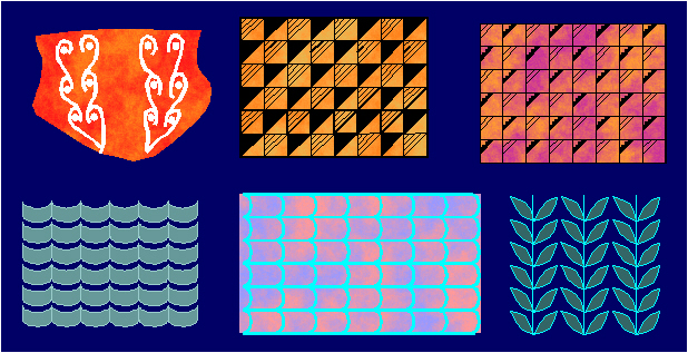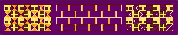From the Paleolithic onward, ornaments with the symmetry group pm (Figure 2.64-2.67) are frequently used in ornamental art, as "geometric", "plant" and "animal" ornaments. By having one polar and one non-polar generating translation axis, they produce an impression of directed motion in the direction parallel to the reflection lines, which usually coincides with a vertical or horizontal line. In the same way as in friezes with the symmetry group 1m, the visual dynamism of these ornaments can be increased by choosing an adequate fundamental region or elementary asymmetric figure belonging to it. There are no enantiomorphic modifications. The form of the fundamental region may be arbitrary, but requires at least one rectilinear boundary.