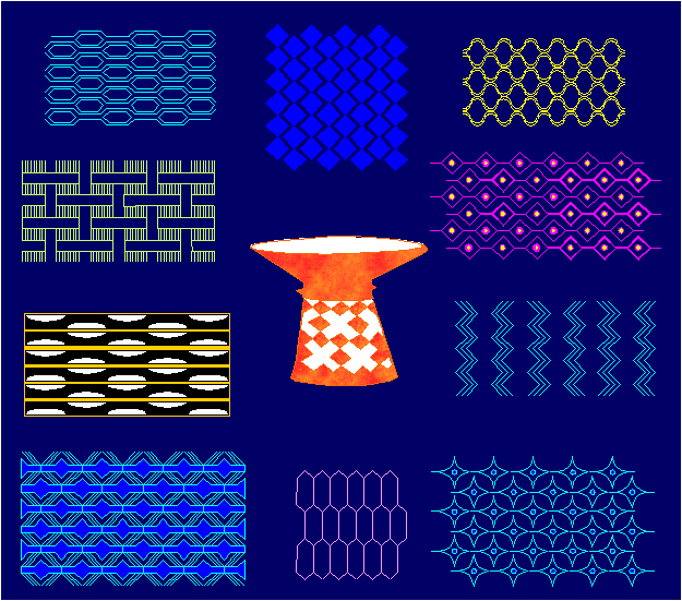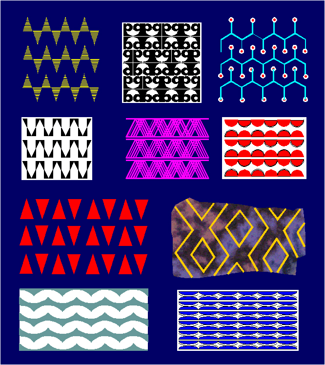 Examples of ornaments with the symmetry group pg in the ornamental art of Africa.