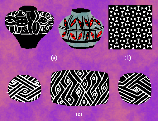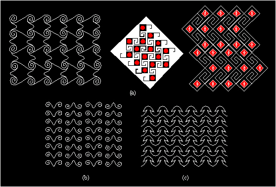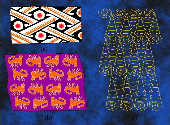 Ornaments with the symmetry group pgg: (a) Columbia, around 800-1500; (b) pre-Columbian art, Peru; (c) the ethnical art of Oceania.