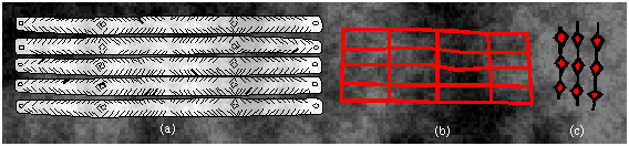Examples of ornaments with the symmetry group pmm in Paleolithic art: (a) Mezin, USSR, around 12000 B.C.; (b) example of a rectangular Bravais lattice, the Lasco cave; (c) Laugerie Haute.