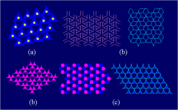 Ornaments with three-fold rotations: (a) p3; (b) p31m; (c) p3m1.